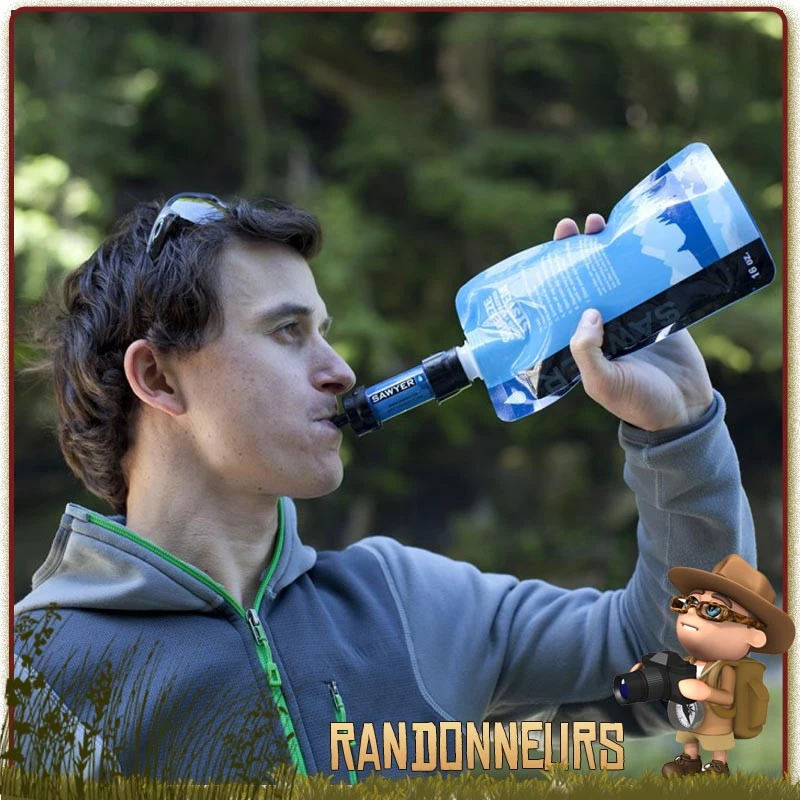 Paille Filtrante Mini Sawyer avec gourde souple, seringue et tube souple plastique