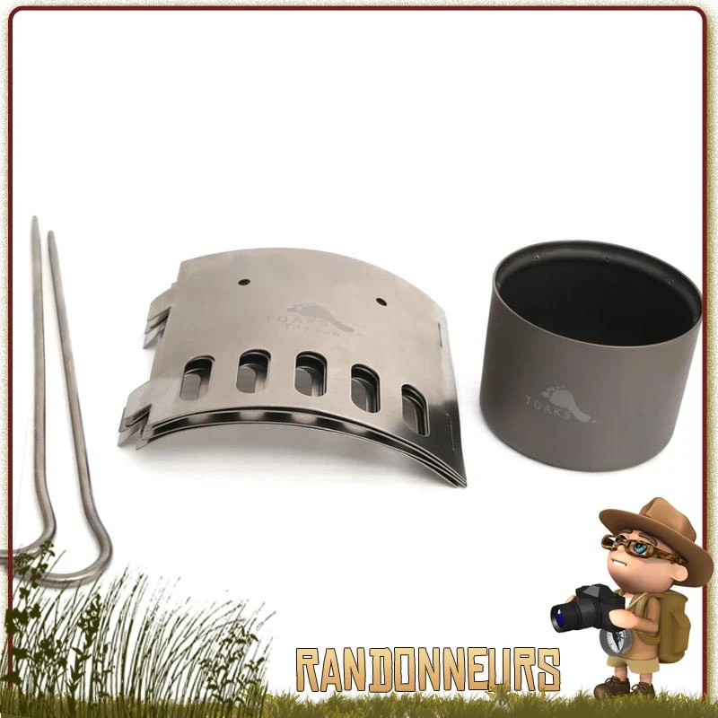 Supporte les pots de cuissons de taille 550, 650 et 750 ml Toaks (non fournis)