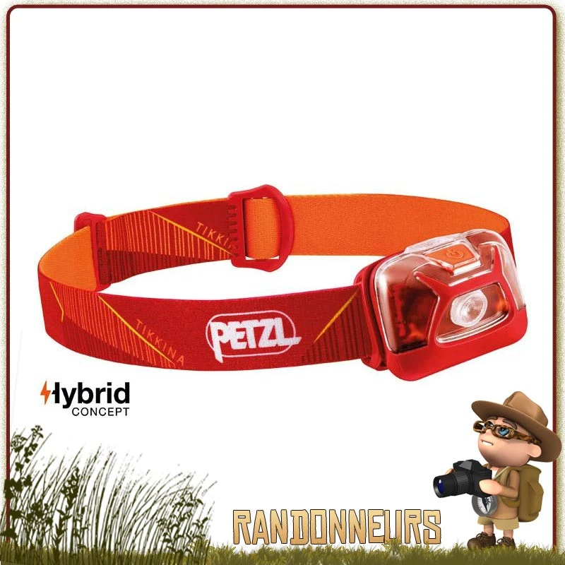 Lampe Frontale PETZL Tikkina avec trois piles type AAA, couleur ROUGE