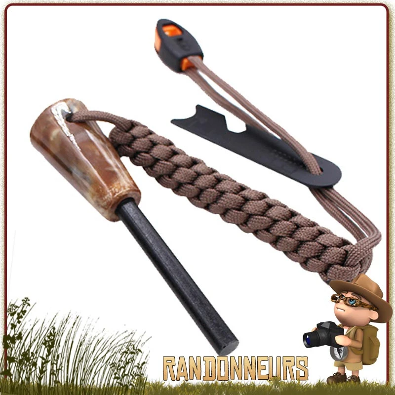Pierre à feu ferrocérium de survie Origin Outdoors avec lanyard paracorde tressée de 2 mètres et sifflet