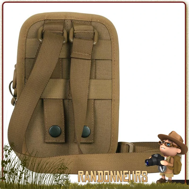 Pratique et fonctionnelle, avec de nombreuses poches de rangement, système d’attache MOLLE pour l’intégrer à un sac à dos et sangle de portage