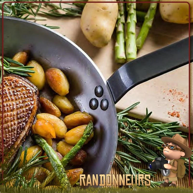 Poêle bushcraft en acier, diamètre 32 cm, permettant de nombreuses cuissons : saisir, sauter, dorer, mijoter…