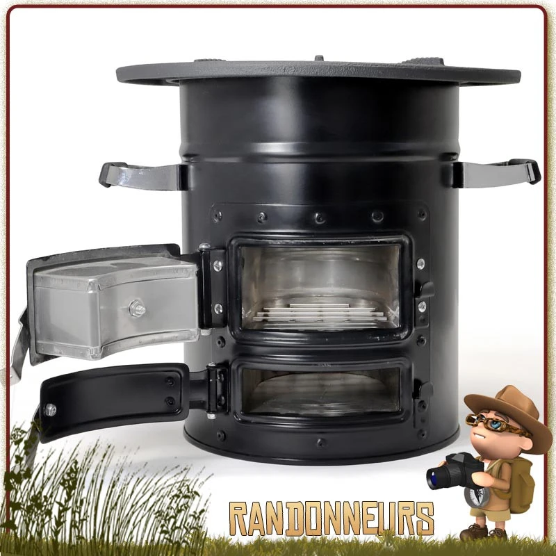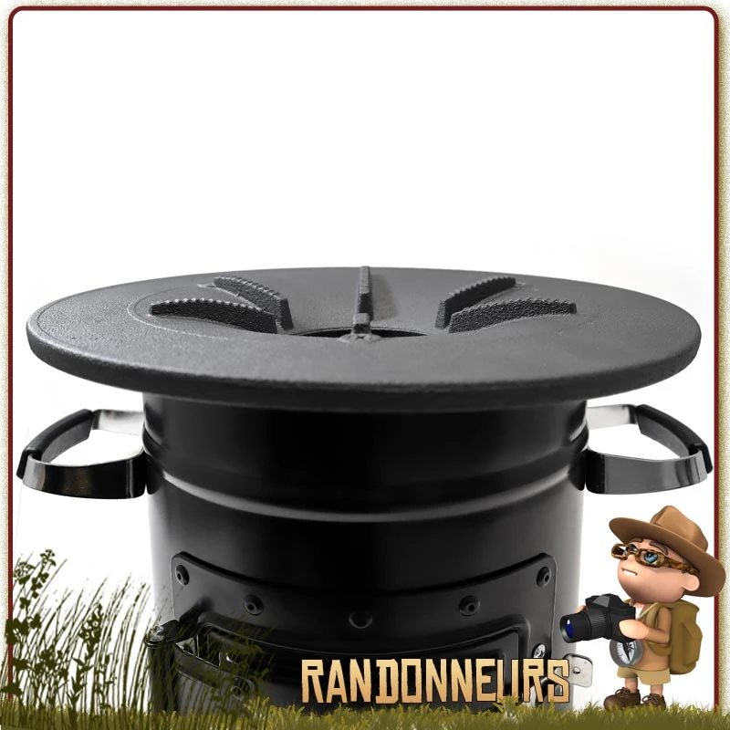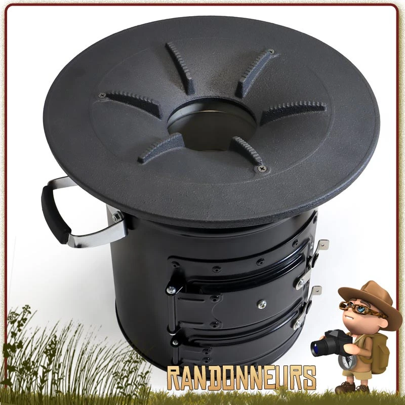 Le réchaud poêle fusée Skadi Origin Outdoors est robuste et efficace avec sa conception en acier inoxydable et plaque supérieure en fonte.