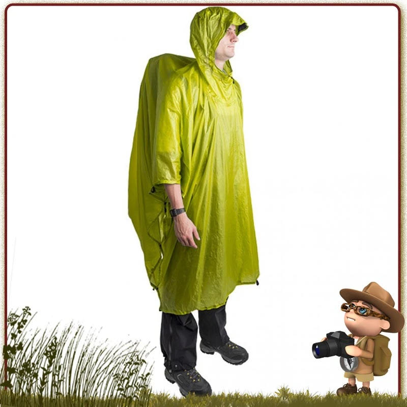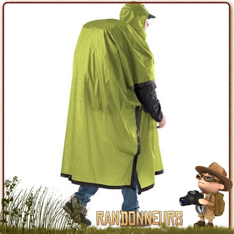 Poncho « nano » d’un encombrement mini et poids plume, d’une excellente résistance transformable en abri, tarp, tapis de sol et double toit de tente.