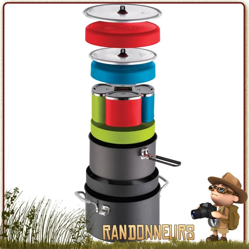 La popote familiale Flex 4 System MSR est un ensemble de vaisselle ultra légère et compacte, pour la préparation des repas pour quatre personnes.