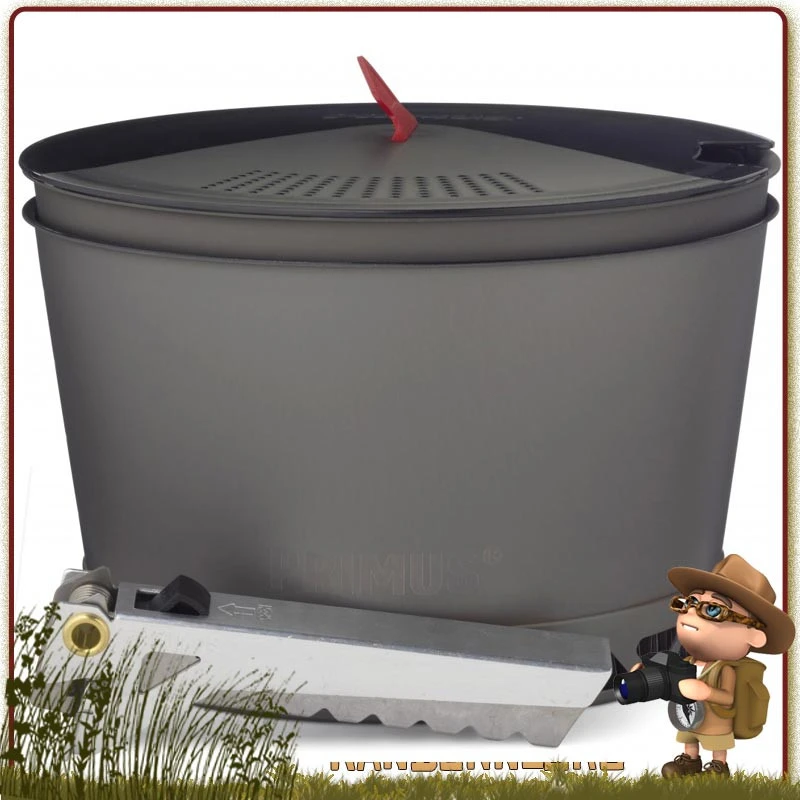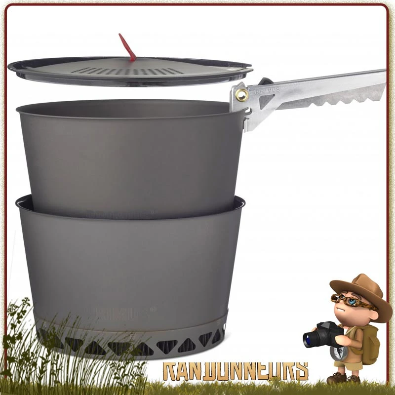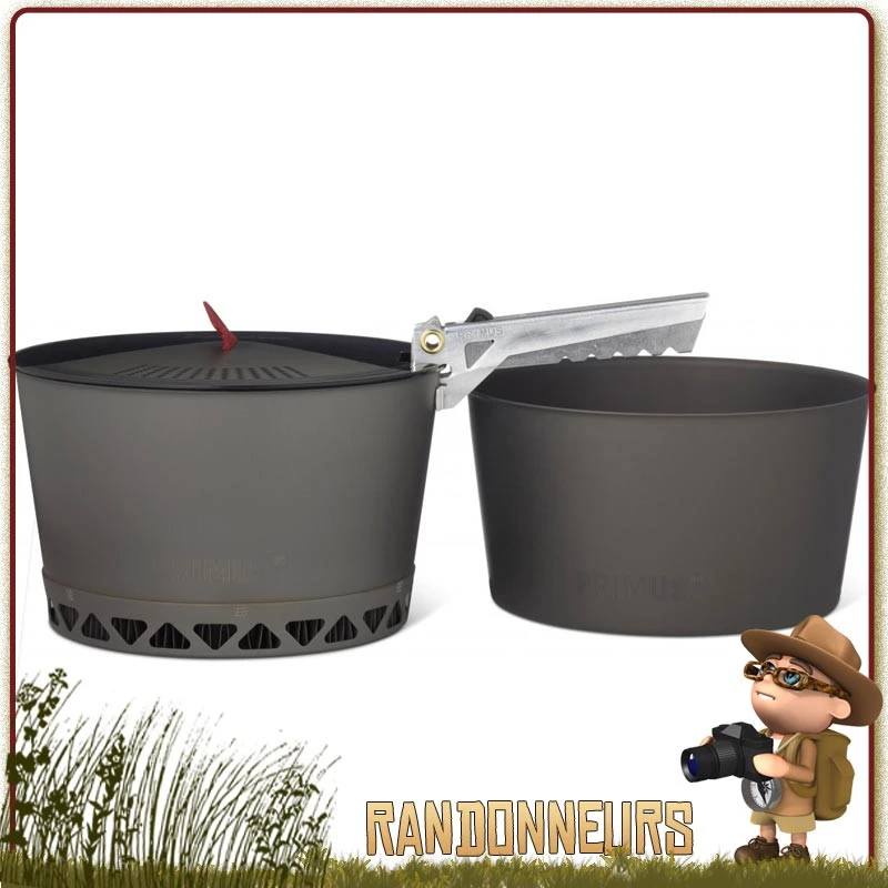 Set Popote Aluminium PrimeTech 2.3L Primus 4 Pièces (2x Casseroles, 1x Pince preneuse, 1x couvercle passoire) avec housse de rangement