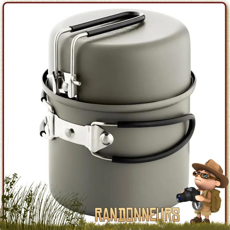 Ensemble cuisson cuisine complet, léger (464 g), et compact prévu pour optimiser le volume dans votre sac à dos, sans diminuer les performances d’un réchaud camping.