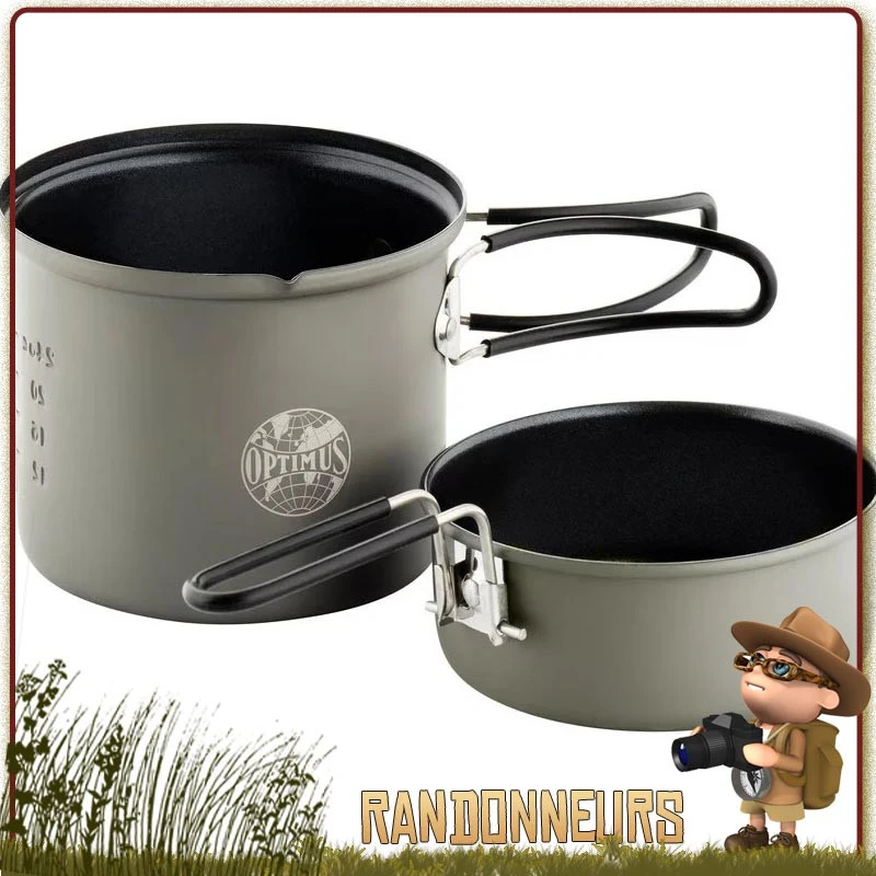 La popote Weekend est composée d’une grande casserole graduée de 0.9 Litres avec bec verseur et une poêle à frire qui fait aussi office de couvercle