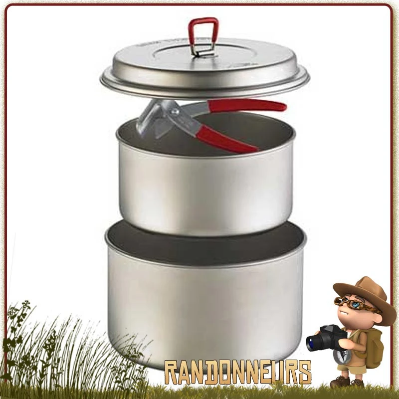Jeu de Casseroles TITAN 2 MSR (Petite casserole, Grande Casserole, Couvercle, Pince Preneuse) avec filet de rangement