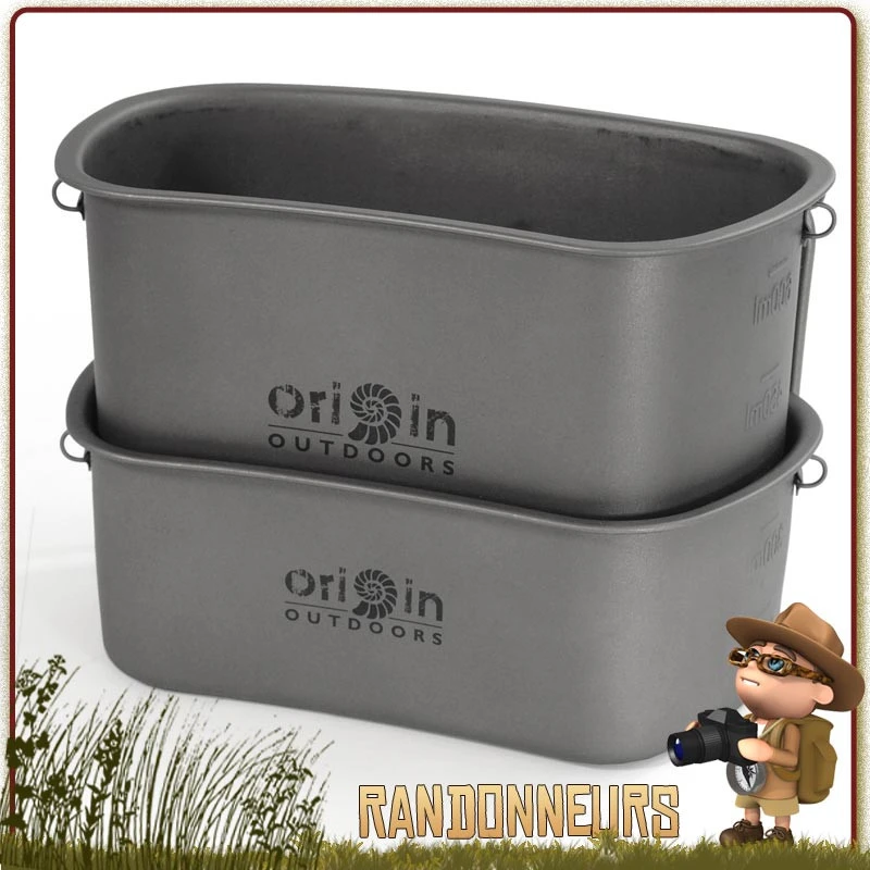 La popote Titane Origin Outdoors est un combo pot et quart en titane ultra léger pour la randonnée ultra light en mode solo et Compatible avec la gourde Titane 56211 Origin Outdoors pour créer un ensemble complet pour le bivouac et la randonnée