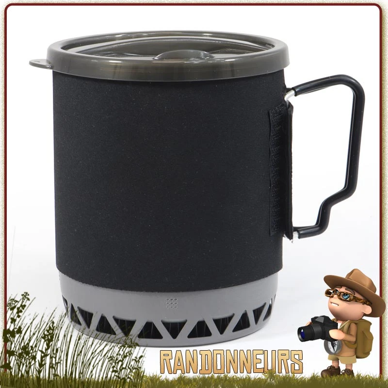 Gros avantage du pot en comportant un répartiteur de chaleur qui fera aussi effet de coupe vent pour votre réchaud gaz.