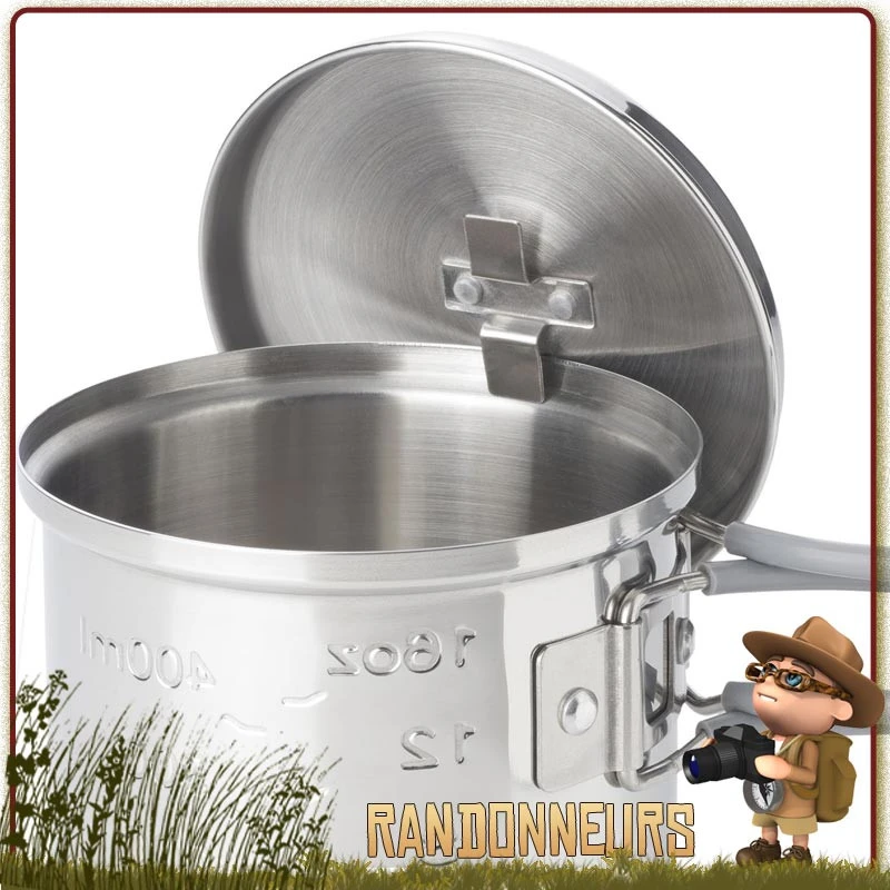 Robuste et légère, ce pot inox Esbit est compact pour se glisser facilement dans un sac à dos bushcraft randonnée.