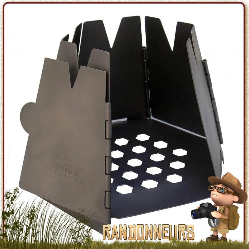 Réchaud Bushcraft bois, Titane HEXAGON Vargo, entièrement en métal titane et pliable.