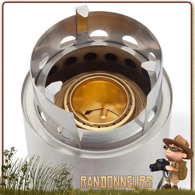 Les bordures internes de l’anneau de cuisson, positionnées en diagonale permettent de diriger les flammes directement sous le centre de la casserole ou de votre popote camping. Elles permettent également à l’air de ne pas retomber dans le foyer, ce qui pourrait sur doser l’apport d’oxygène et diminuer le rendement calorifique du réchaud Solo Stove.