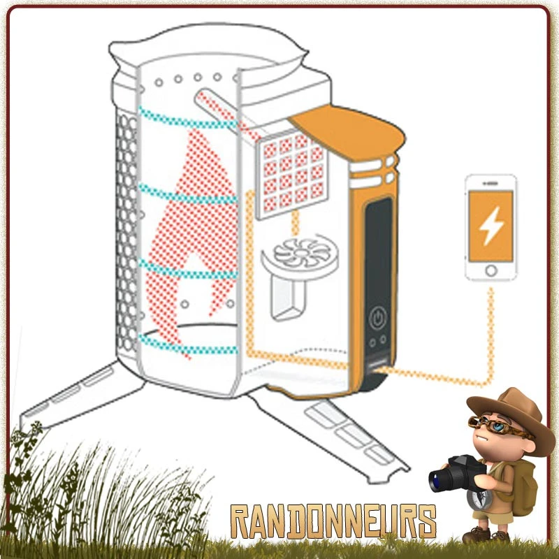 Le générateur thermoélectrique convertit la chaleur de la combustion en électricité qui va être régulée et répartie par un microprocesseur au niveau du ventilateur interne ou vers le port USB