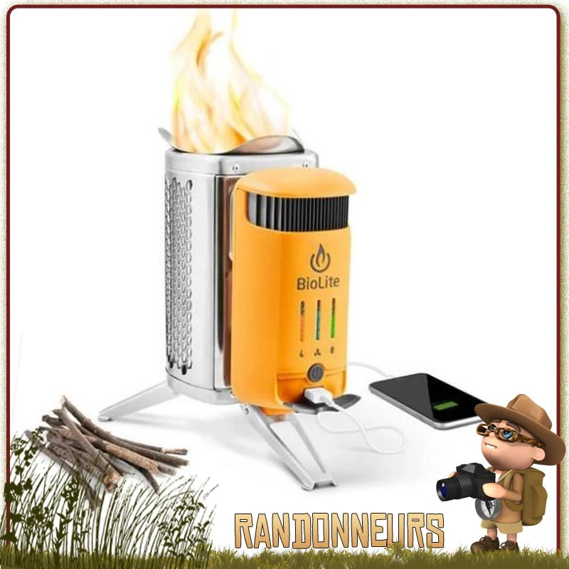 Grâce au système thermoĂ©lectrique intĂ©grĂ© au rĂ©chaud Biolite Campstove 2+, vous disposez de manière quasi illimitĂ© d’une source d’Ă©nergie Ă©lectrique pour recharger tous vos petits appareils Ă©lectriques (tĂ©lĂ©phone, tablette, gps), et tout cela au milieu de nulle part, en randonnĂ©e, camping et trek du bout du monde