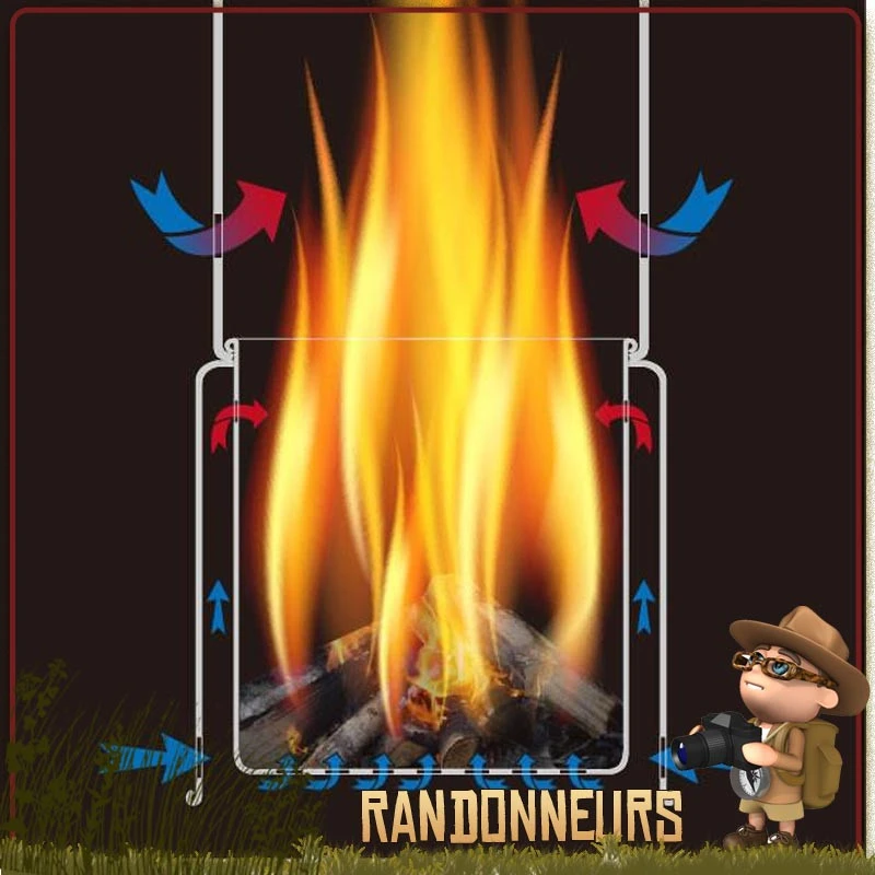 La chambre de combustion ajourée ne touche pas le sol, permettant une entrée directe de l’air dans le foyer