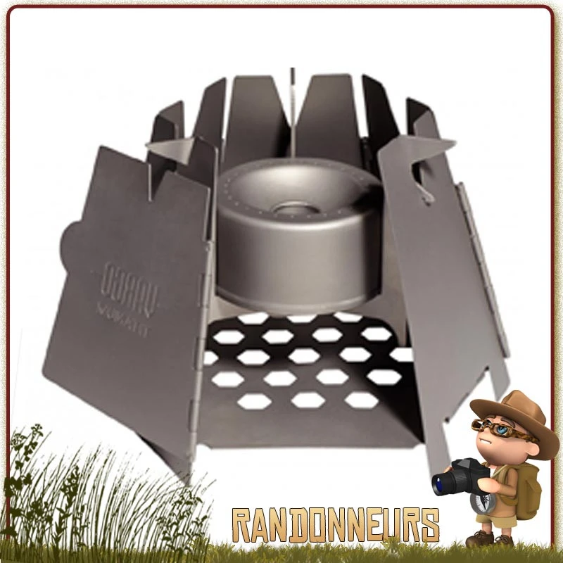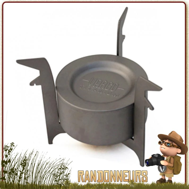 Ce réchaud Vargo ultra léger Converter Stove en titane est un réchaud à alcool liquide avec support intégré et amovible et complète le réchaud vargo hexagon ultra light