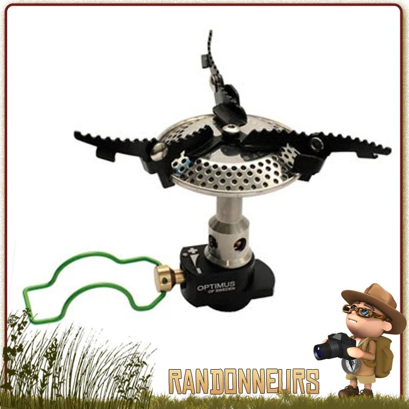 Le réchaud Optimus Crux à une tête de brûleur large et repliable, ses bras de supports dentelés apportent une meilleure stabilité,