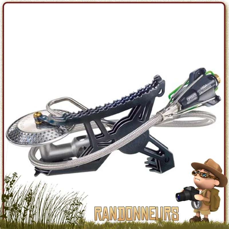 Le Réchaud gaz Optimus Vega à cartouche de gaz déportée est conçu pour fonctionner par temps froid ou en montagne grâce à son système optimisé d’injection de gaz liquide intégré