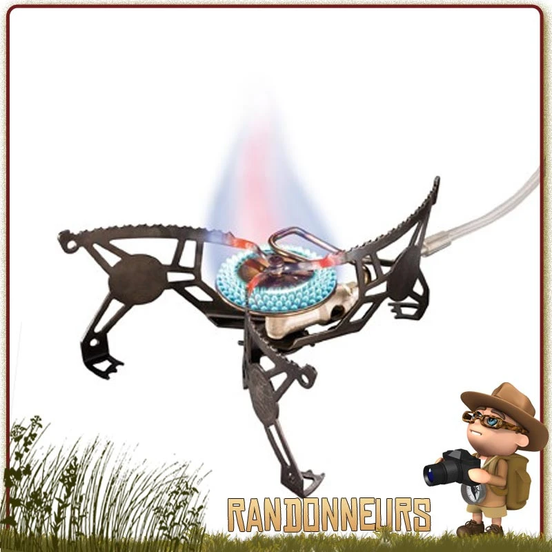 Ses larges pieds dépliables lui assure une bonne stabilité sur le sol lui permettant également d’utiliser de larges popotes et/ou casseroles
