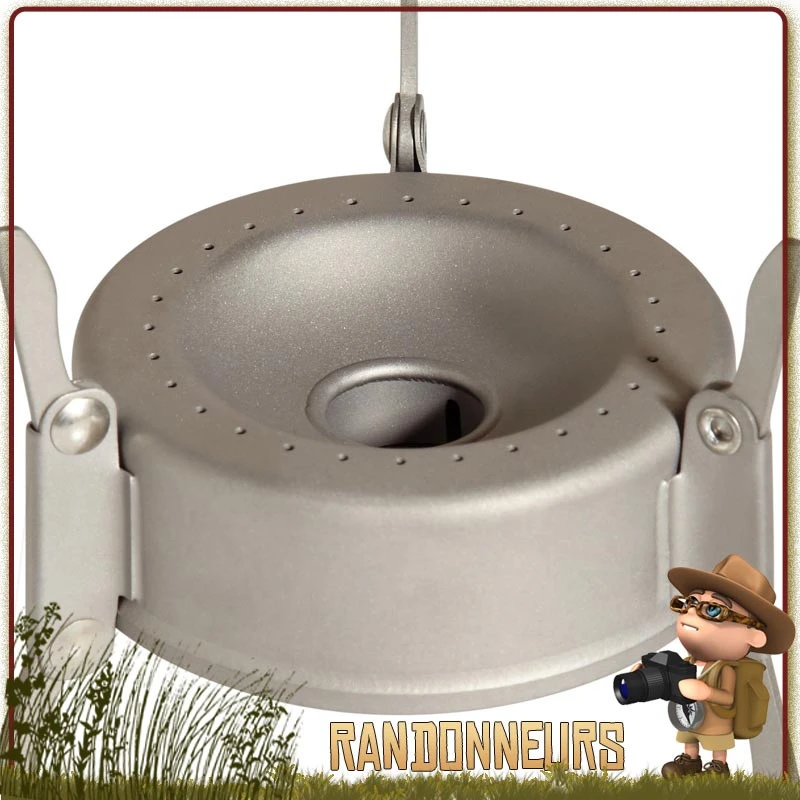 Mais aussi, ses pieds permettent de s’adapter à la popote, au mug ou autre vaisselle de camping que vous pourrez utiliser dessus pour la cuisson de vos aliments.