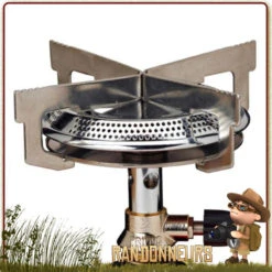 L’ échangeur thermique du brûleur à tête radiante assurant une meilleur répartition de la chaleur de la flamme du réchaud gaz vers la popote et les aliments contenus dans cette dernière.