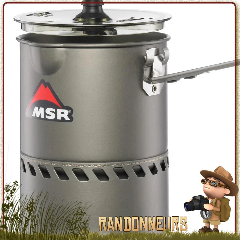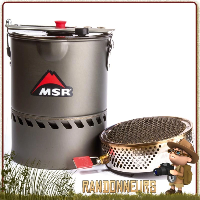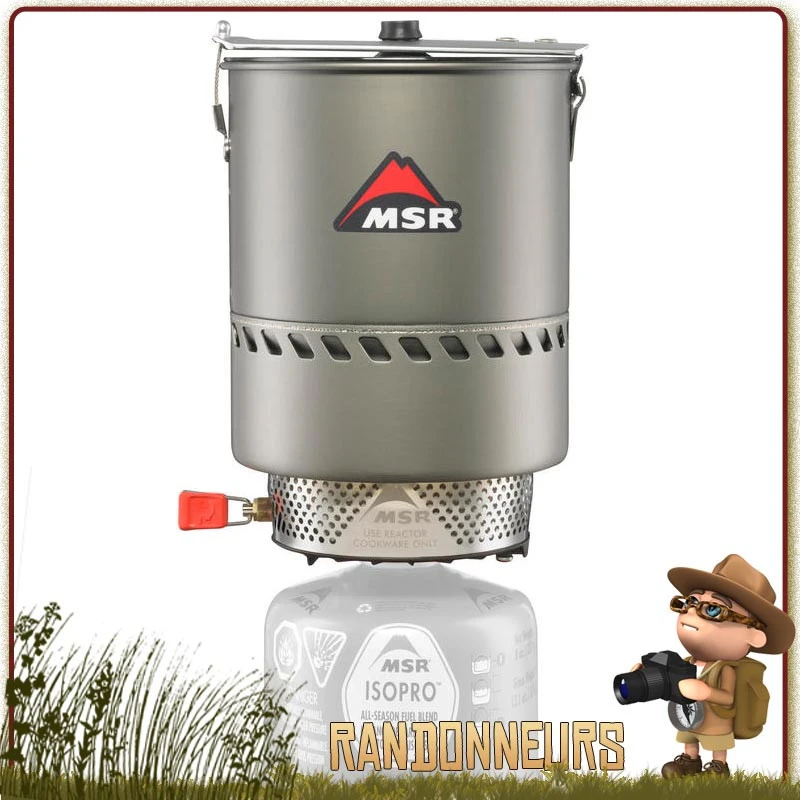 Le système de réchaud Reactor 1.0L MSR pour la randonnée légère et le camping, est ensemble réchaud gaz et popote de 1 Litre graduée en aluminium anodisé avec répartiteur de chaleur à ailettes.