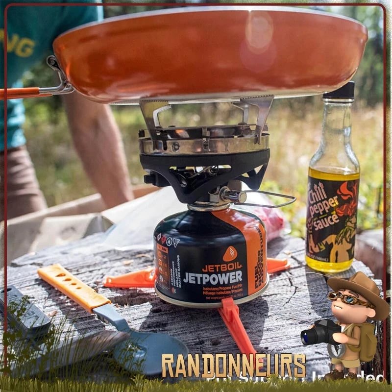 Le système de Réchaud de camping au gaz SUMO JeBoil est un réchaud grand format ultra léger et rapide 2 en 1.
