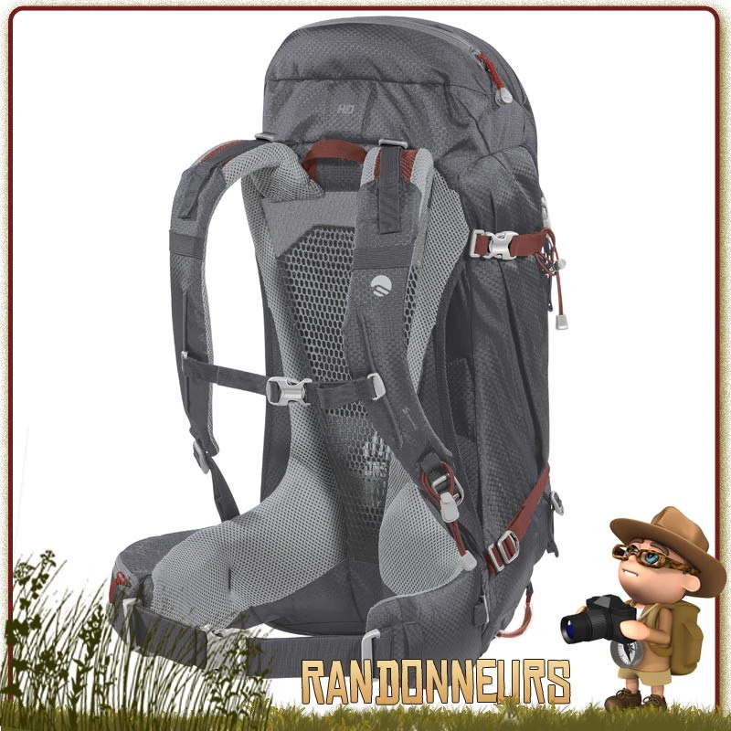 Dossier allégé assurant une parfaite ventilation dorsale et un confort de portage reconnu dans ce modèle de sac daypack Ferrino.