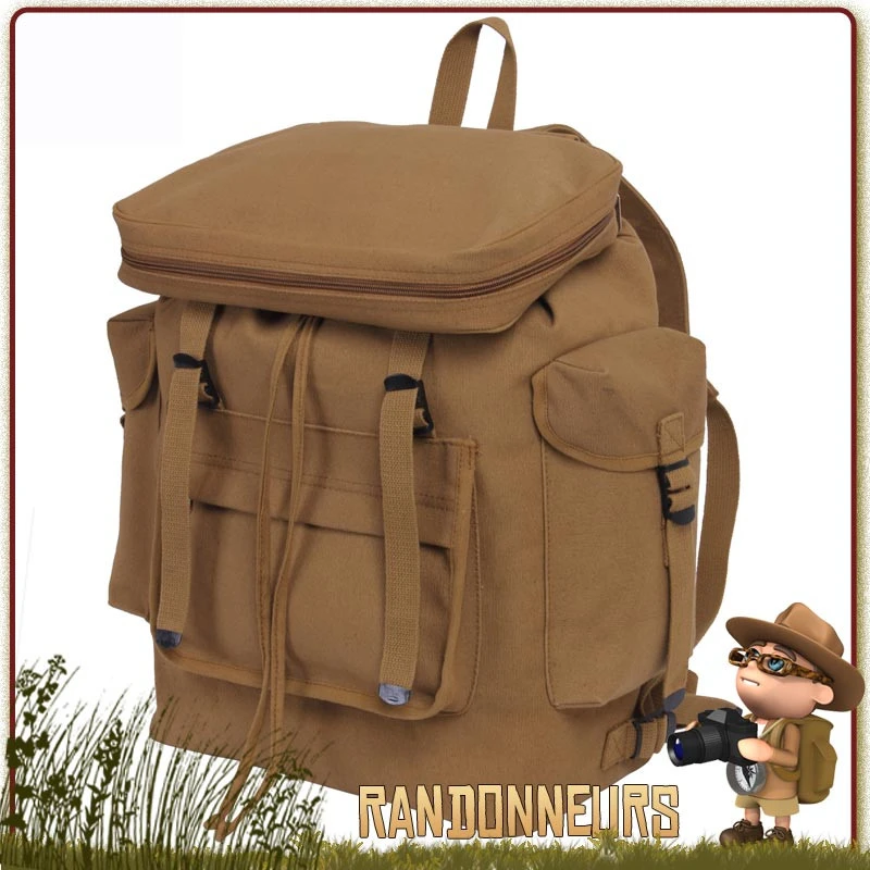 Sac à dos vintage de type européen en toile cotons canvas robuste. Retrouvez les sensations d’antan avec ce sac à dos qui saura trouver sa place en randonnée bushcraft et sorties citadines
