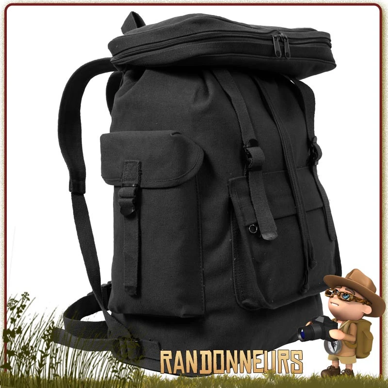 Sac à Dos Bushcraft, type Européen en coton canvas, Noir