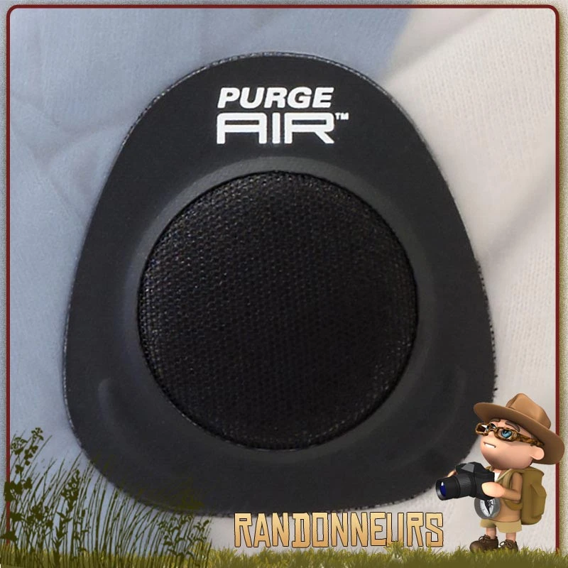 A la compression, via les sangles latérales, l’air contenu dans le sac est évacué par la soupape purge-air qui assure une compression rapide et efficace