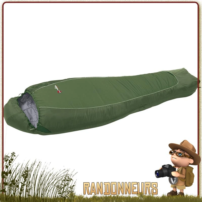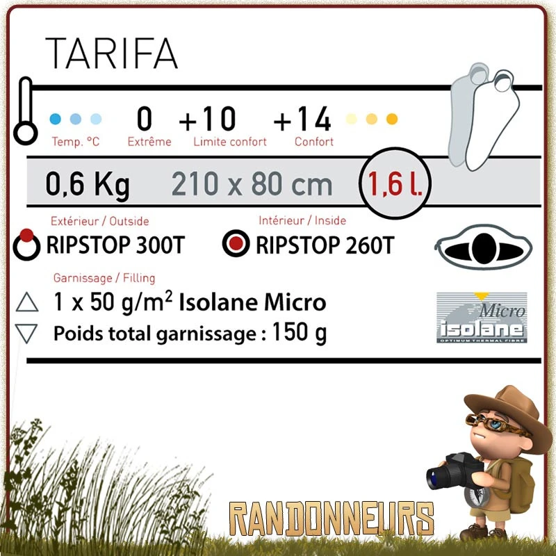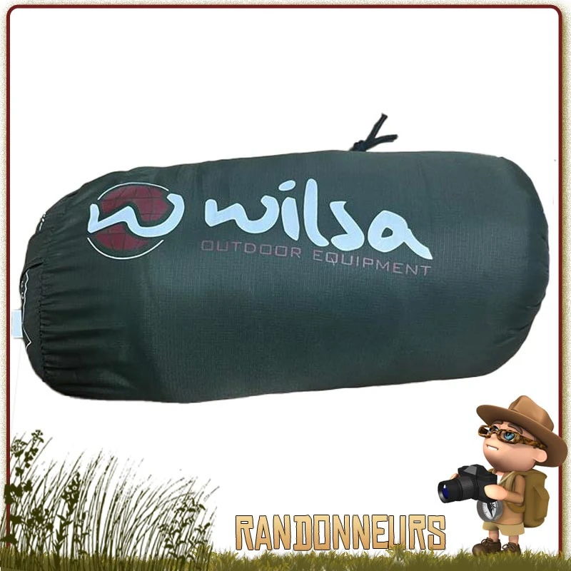 Sac de couchage TARIFA Wilsa, résistant et robuste est parfaitement adapté aux conditions les plus courantes en bivouac en cours de trek estival. Un très bon compromis au rapport poids et température confort à +14°C
