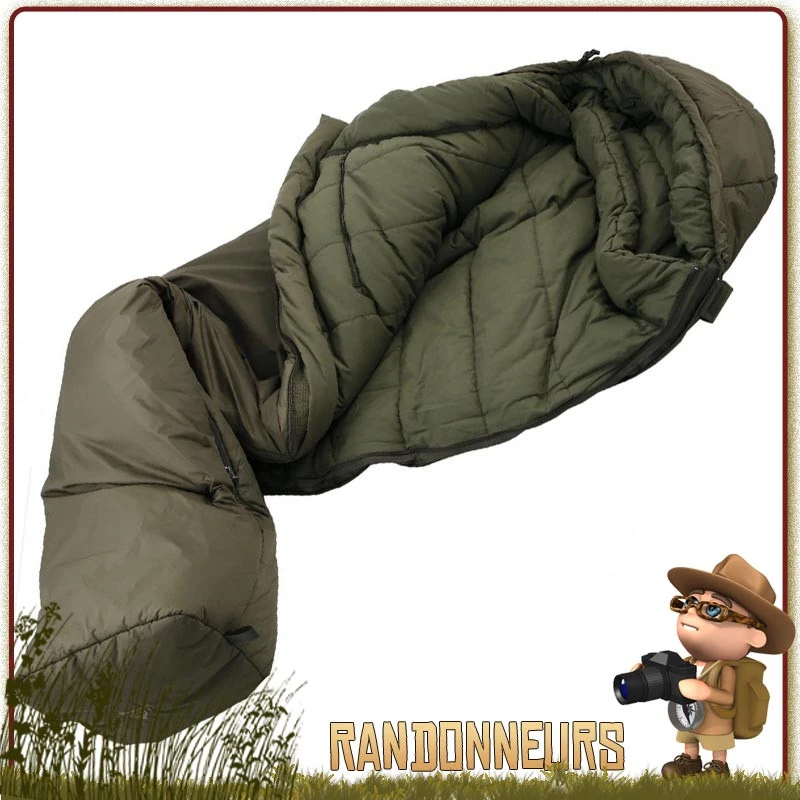 Ce Sac de couchage WILDERNESS Carinthia, est sans nul doute l’un des plus performant en résistance et confort en conditions extrêmes en températures froides et en plein vent. Sac de couchage adapté et conçu pour le terrain, en conditions climatiques difficiles (humidité, vent, températures froides), proposant un ratio Poids / Compression / Température Confort intéressant et surtout, une robustesse à toutes épreuves en bushcraft, randonnée montagne et paquetage militaire. Doté de manches rétractables rangées dans des poches latérales au sac de couchage dans le garnissage permettant une mobilité maximale des bras pour toutes situations d’urgence.