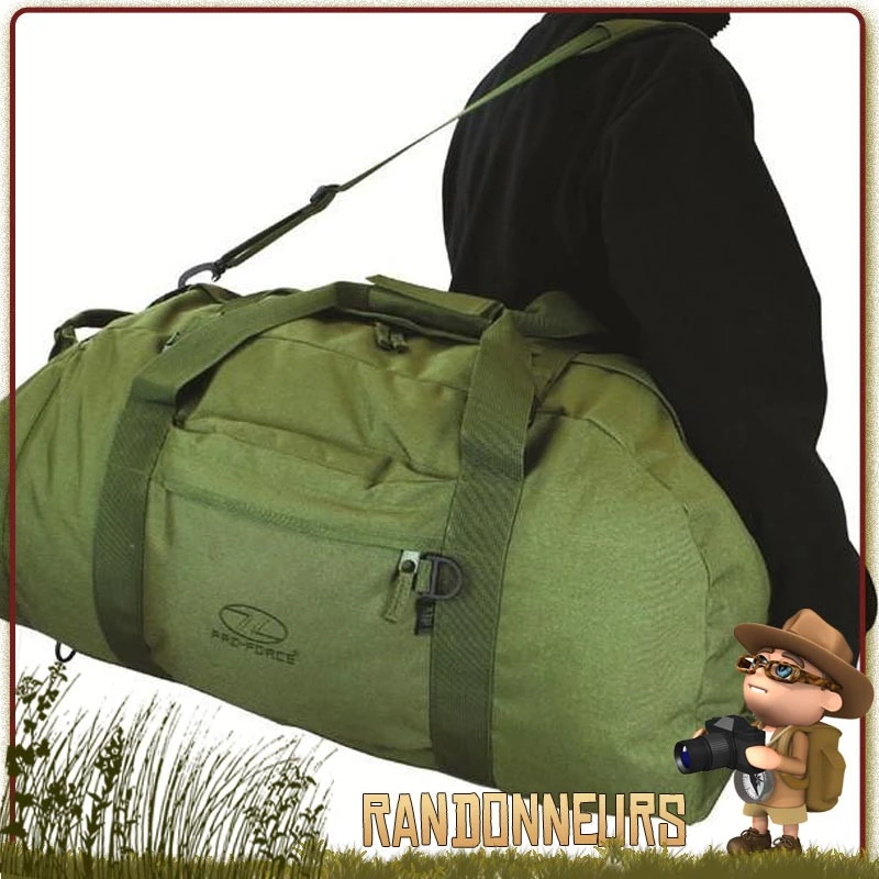 Sac de voyage militaire LOADER 65, style sac cargo, résistant avec lanière épaule et poignées renforcées.