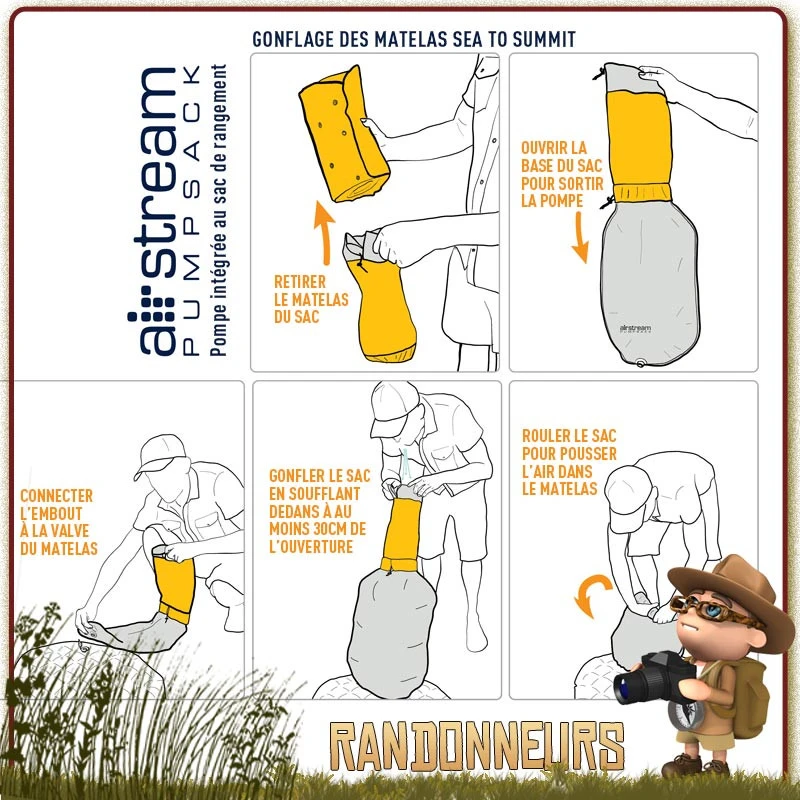 Système de gonflage : Gonflage mécanique (pompe Airstream fournie) ou insufflation buccale