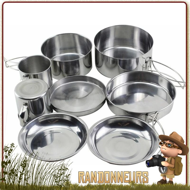 Ensemble complet de Popote Acier Inox pour la randonnée et le camping, pour deux personnes