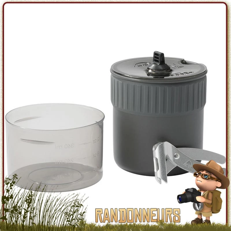 Set Popote Trail Mini Duo Pocket Rocket Deluxe MSR (1x bol gradué, 1x casserole alu HA, pince preneuse, couvercle, sac de rangement, réchaud gaz pocket rocket Deluxe)