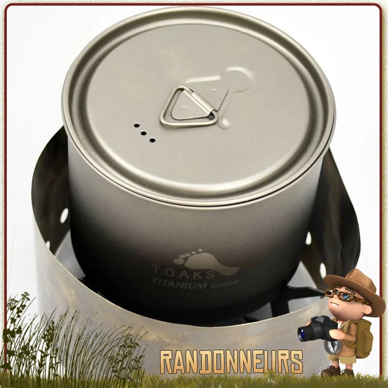 Le réchaud Titane Toaks Titanium Ultra Light est une popote complète avec réchaud ultra léger pour la randonnée, le trek et la marche ultra légère