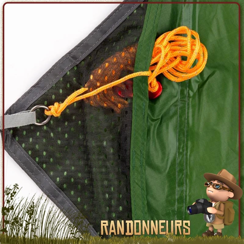 Sa forme en trapèze permet une utilisation universelle pour n’importe quel campement outdoor, tout en assurant une bonne ventilation sous abri