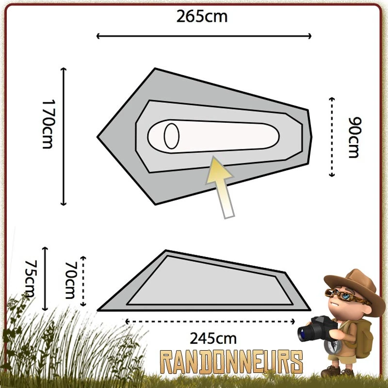 Malgré ses dimensions généreuses, la forme de la tente ne permet pas aux personnes de plus de 1.75 m d’y être à l’aise !!