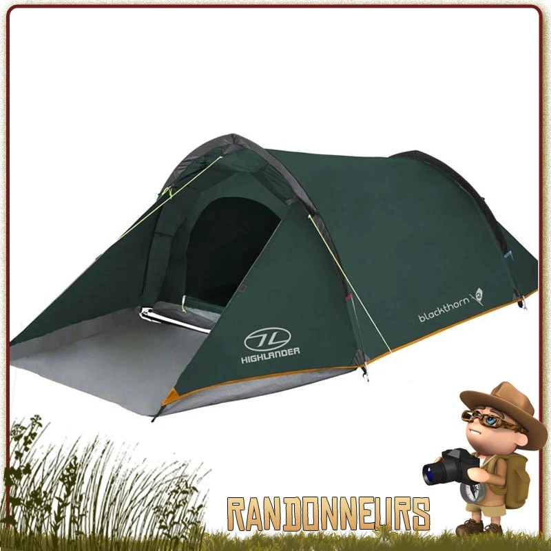 Tente Blackthorn 2 places Highlander, tente double toit pour deux personnes, montage facile et peu encombrante, idéale pour les motards, les cyclistes et le trek.