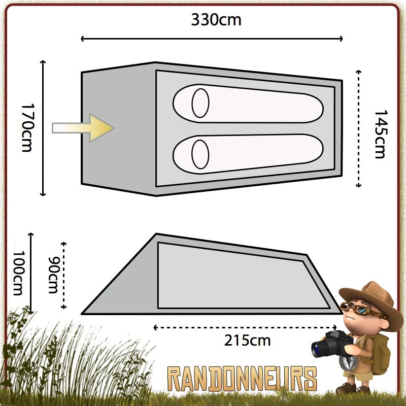 L’ouverture frontale, agrĂ©mentĂ©e d’une large abside et d’un tapis de sol, assure un large espace de vie et une protection optimale de votre Ă©quipement