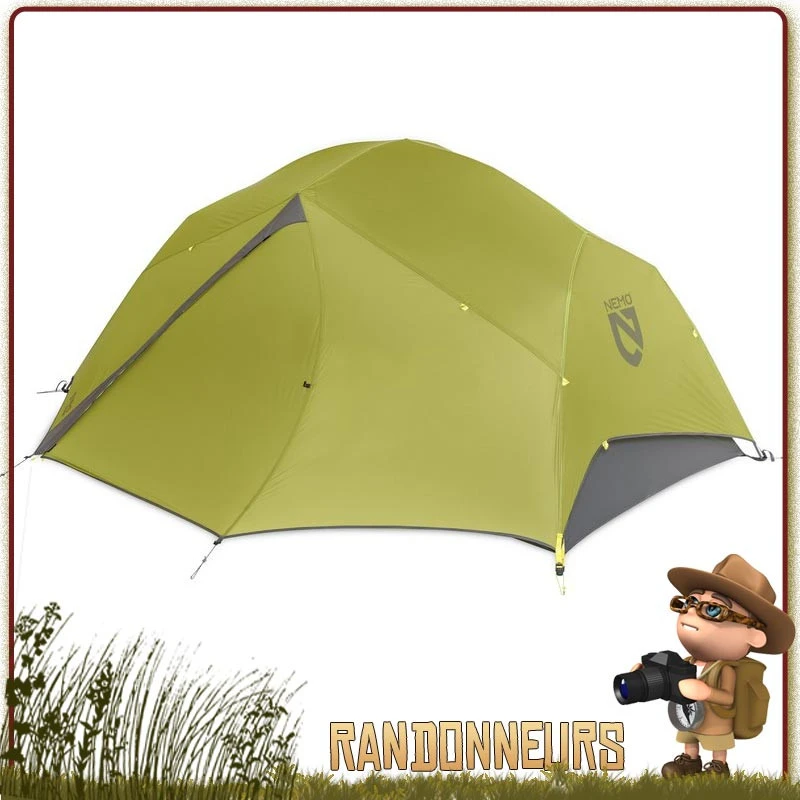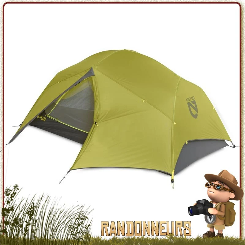 La tente DAGGER OSMO 2P de Nemo est une tente de randonnée légère, deux places de 1.86 kg seulement avec deux absides et deux entrées.