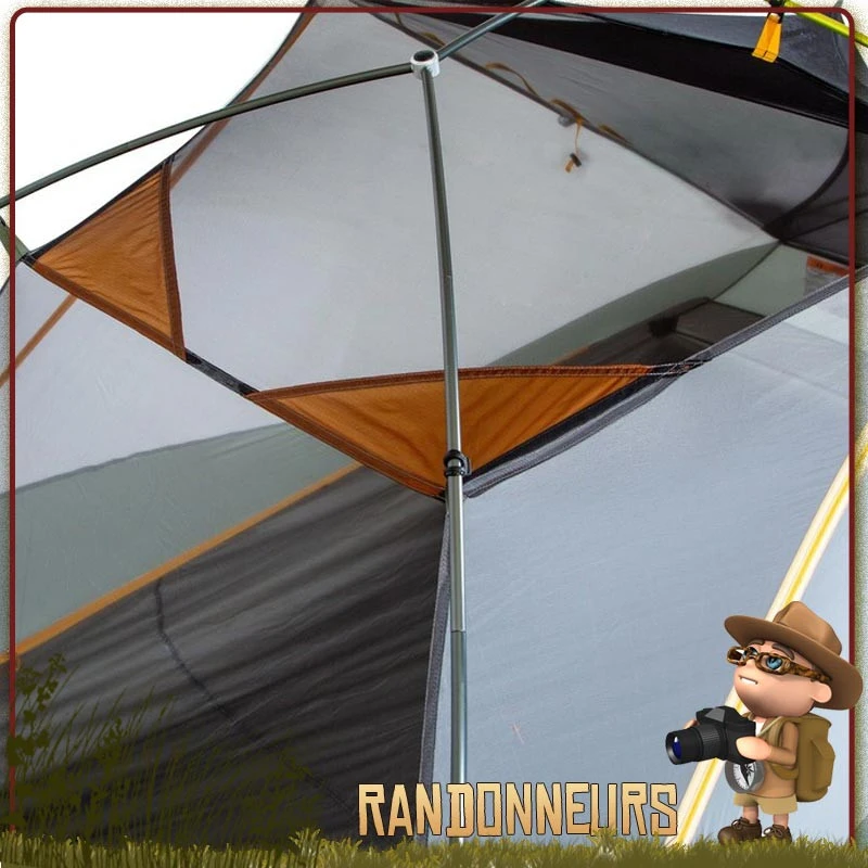 Tente deux places 3 saisons, dispose d’arceaux plus courts pour optimiser le rangement dans une housse imperméable munie de sangles pour une fixation sur guidon.
