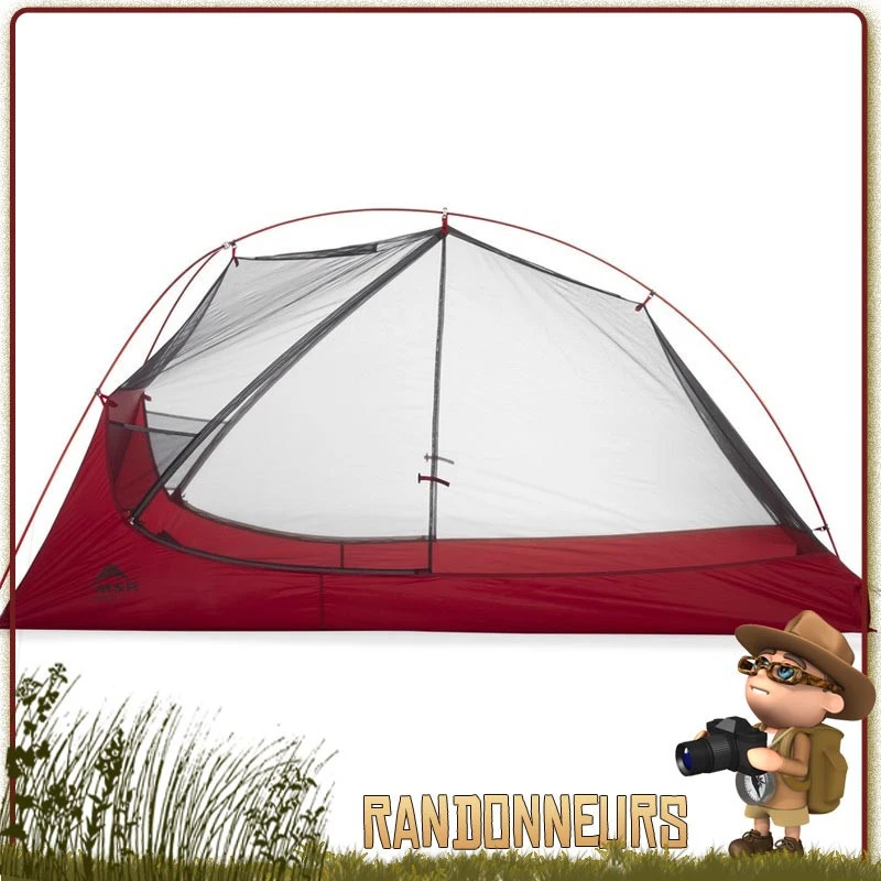 Autoportante, la tente Freelite 2 Msr propose un double toit qui vous protègera des éléments (pluie, vent) et la chambre intérieure, en mesh optimise la circulation de l’air afin d’éviter les effets de condensations
