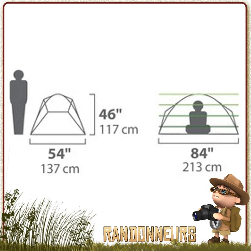 Déplié : 213 x 137 x 117 cm (avec en plus 2x 61 cm de vestibule)