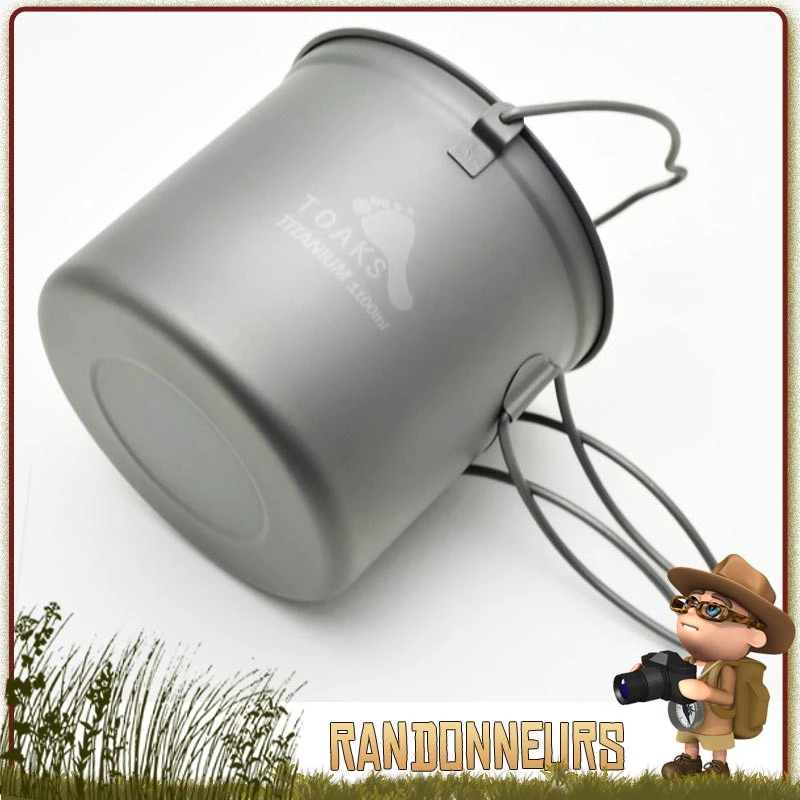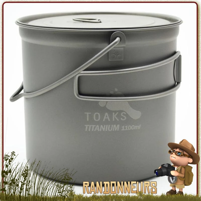 La popote Titanium de Toaks est un pot en titane ultra léger pour la randonnée ultra light en mode familial. Pratique avec sa anse de support pour la pendre au dessus de votre feu de camp