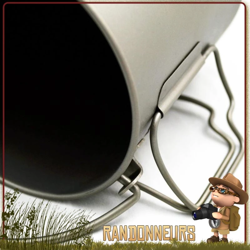 La anse principale permet de maintenir la popote Toaks au dessus d’un feu de camp par exemple, particulièrement bien adaptĂ© Ă la randonnĂ©e bushcraft